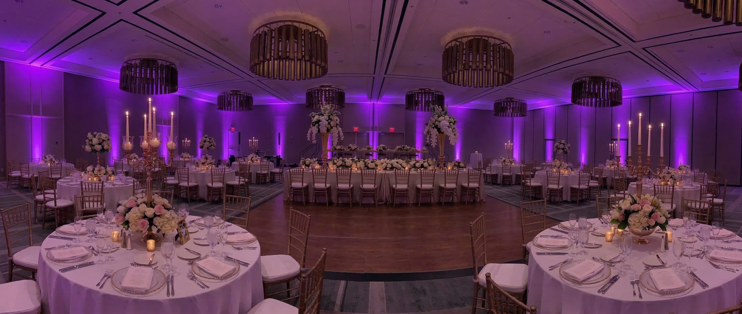 Bare walls deserve more. Uplighting transforms your space, adding depth, energy, and elegance to every corner of your event. Fully wireless and seamlessly placed, it highlights your details and brings the entire room to life.